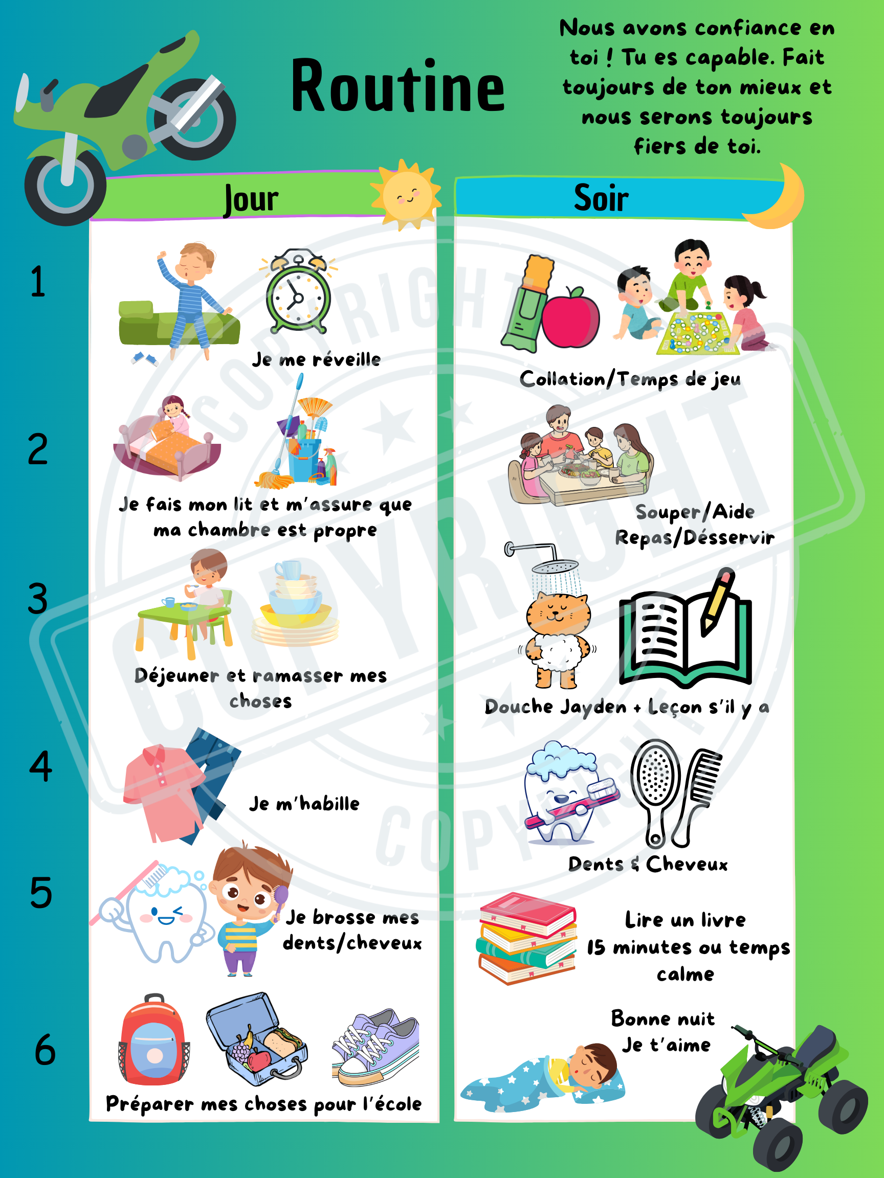 La routine du matin et du soir sont des moments clés pour instaurer un climat positif et éviter les tensions avant le départ à l’école. Cet outil pratique aide les enfants à suivre pas à pas leur préparation grâce à des images claires et des consignes simples.