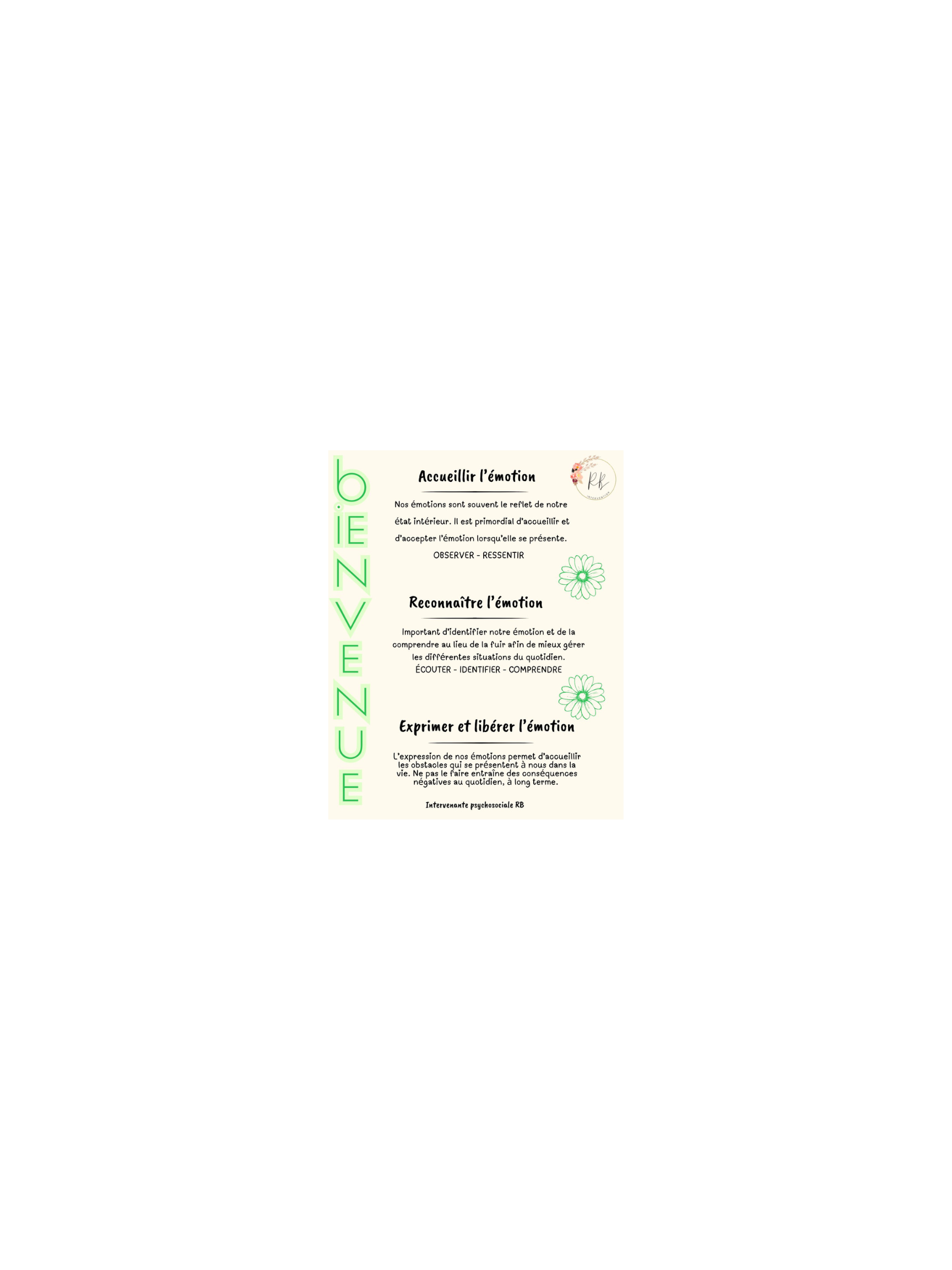 Grâce à des exercices, des exemples concrets et des outils visuels, le jeune apprend à mieux se comprendre et à reprendre le contrôle lorsqu’il vit des situations stressantes, de colère ou de tristesse.