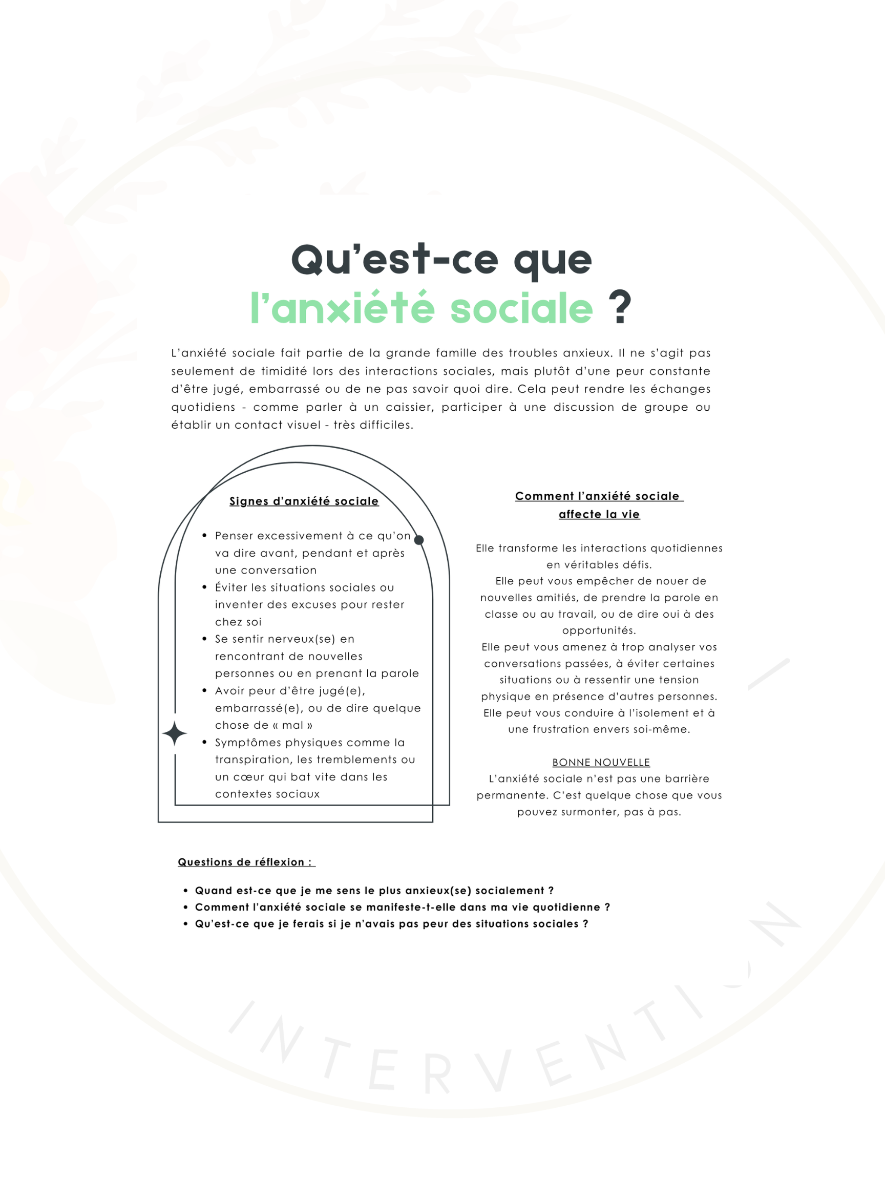 ✔ Aide à comprendre et à gérer l’anxiété sociale